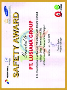 Safety Award 10 Million Man Hours without Loss Time Injury (LTI)