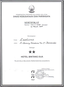 Certifikate of Uji Kelayakan Hotel Bintang Dua